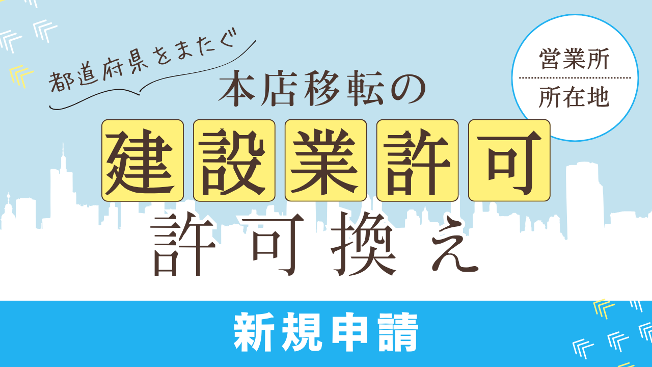 主たる営業所が1か所だけで営業している建設業者が、主たる営業所を他の都道府県に移転するときは、新しい営業所を管轄する都道府県知事から新規に許可を受けなければなりません。