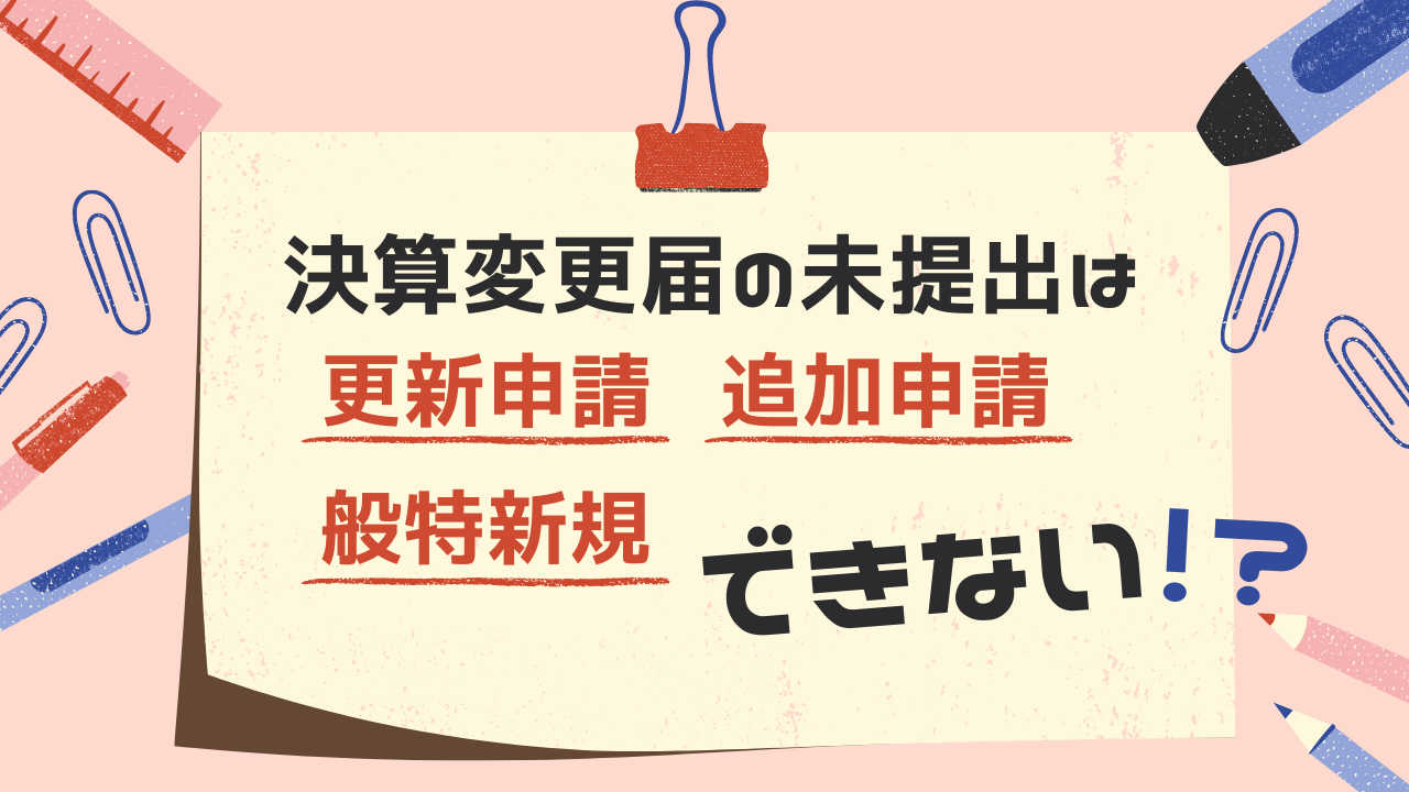 決算変更届は毎年の提出が義務付けられていますので、建設業許可の更新手続きや業種追加手続きができなくなります。