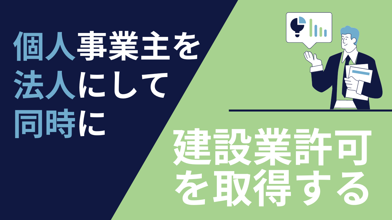 個人事業主を、法人化(会社設立)することと、会社設立したあとに、すぐに建設業許可を取得する場合です。