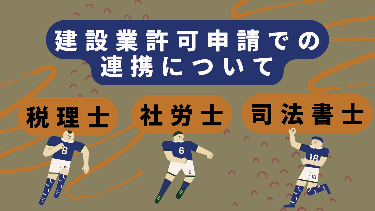 建設業許可申請は、メインは、行政書士が中心になって行いますが、税理士や社労士および司法書士にも手伝ってもらうこともあります。登記は、司法書士でないとできません。