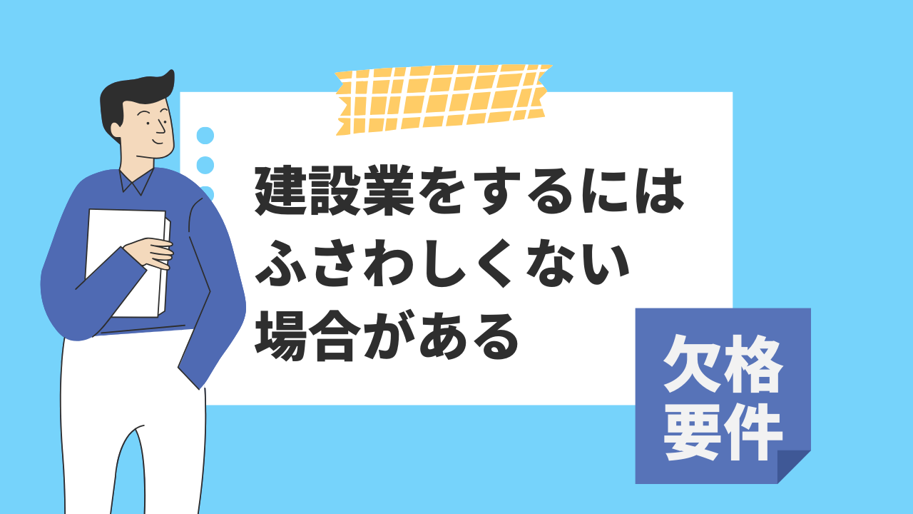 建設業許可の欠格要件は、簡単に言えば、建設業を営むのにふさわしくない者やその会社が許可を受けられないようにするための規則となりますが、詳しくは次のとおりです。