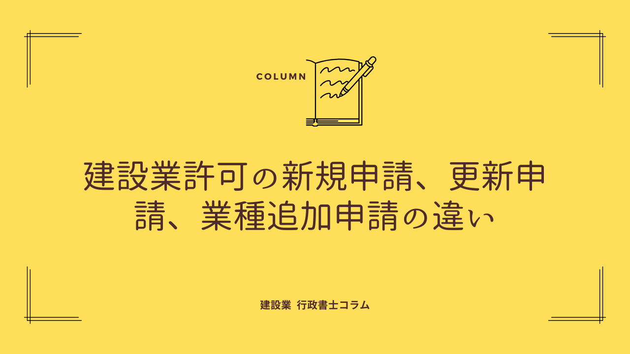 建設業許可の新規申請、更新申請、業種追加申請の違い