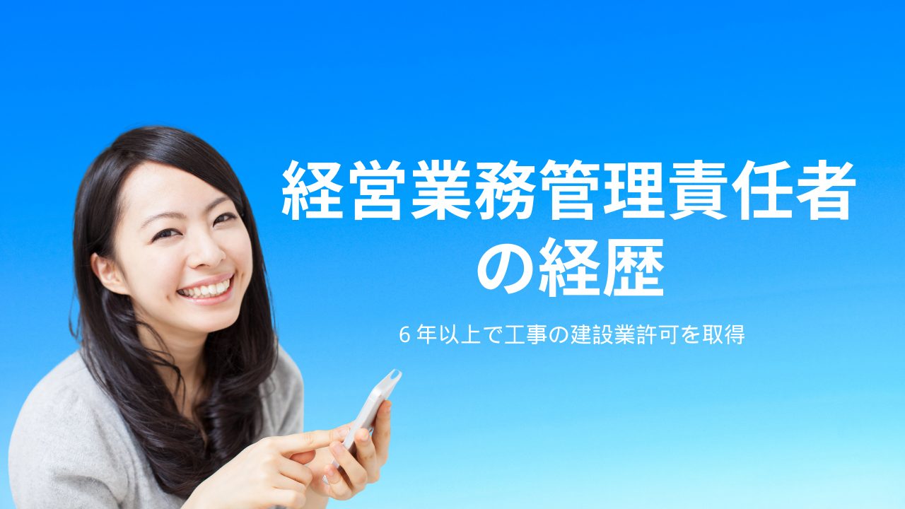 経営業務管理責任者の経歴6年以上があれば、現在行っている工事以外の工事の建設業許可を取得することができます。